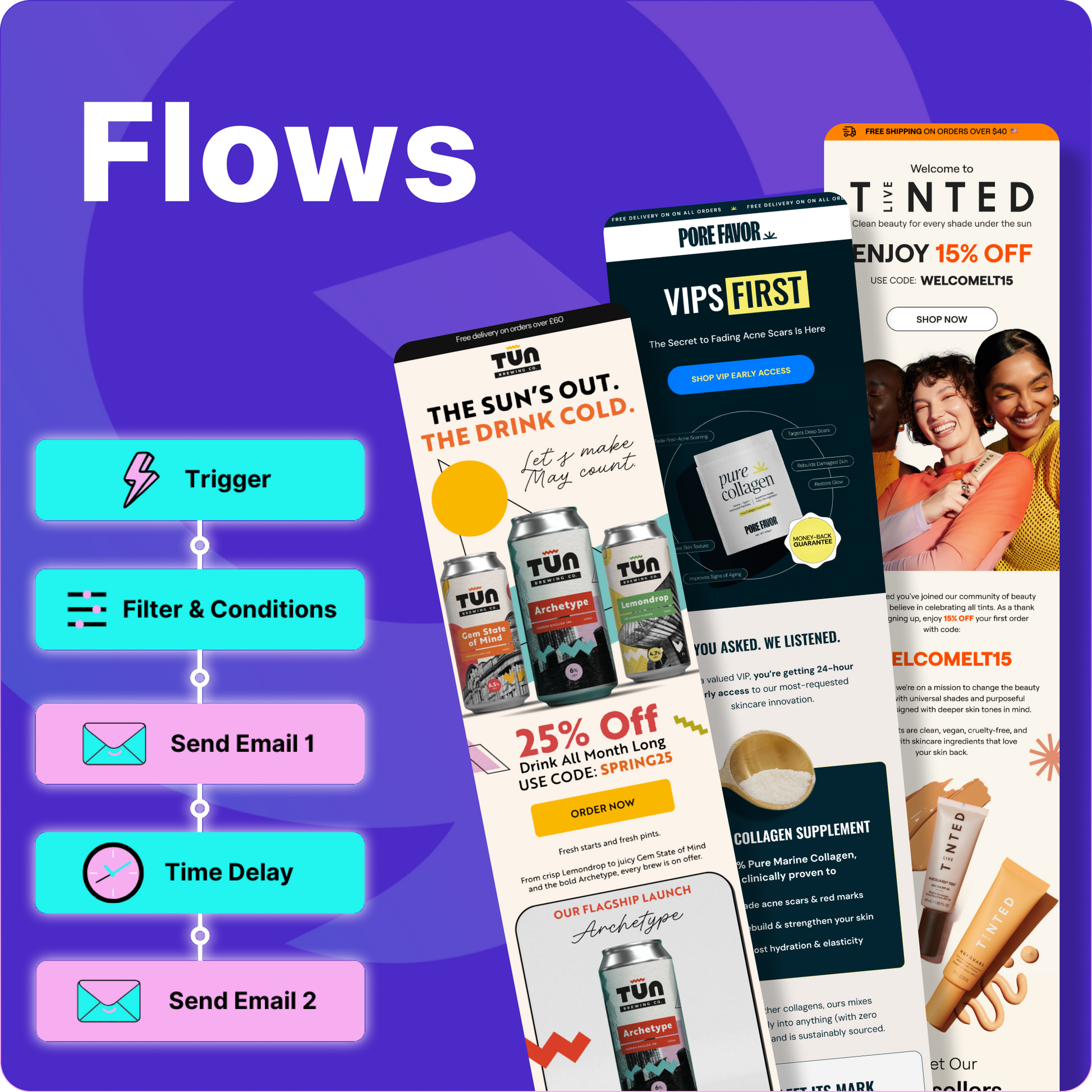 We've tracked an average of 300% increase in revenue across e-commerce brands that have implemented our flows and campaigns. Think of them as the perfect mix of beauty and brains.